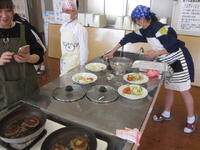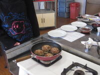 自分たちで立てた手順に従って、役割分担しながら料理を進めていきます。「前回よりも手際がいいですね。」と先生からも褒められました。みるみるうちにおいしそうなハンバーグが完成です。