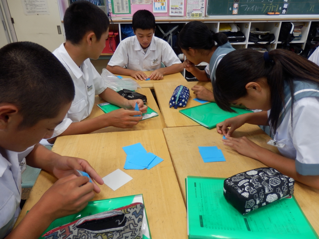 この後、クラスに別れて心を込めて折り鶴を折りました。