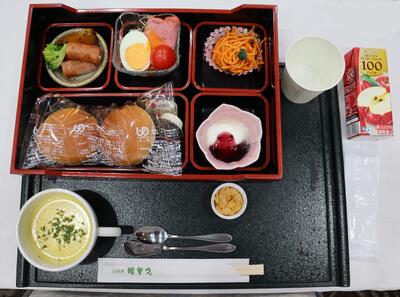 朝のつどいが終わり、朝食です。