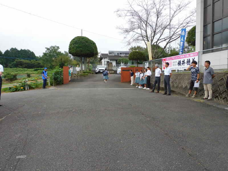 本日は、「朝の挨拶運動」でした。前回は台風接近のため中止でしたので、3ヶ月ぶりの実施となりました。学校応援団の皆さんやPTA役員さんを中心に、登校した生徒へ声かけをしていただきました。