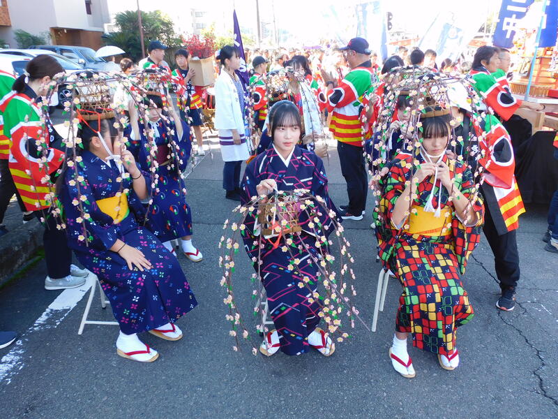 学校応援団の皆様に、おくんち祭りの神幸行列で披露する「梅娘」の着付け指導をしていただきました。10/9の本番に向け、生徒の気持ちも高まってきています。本番も大変楽しみです。