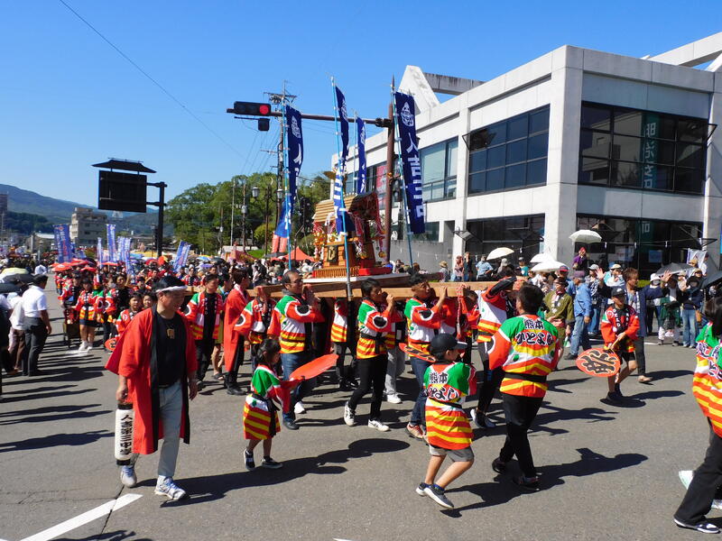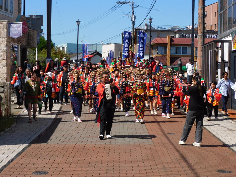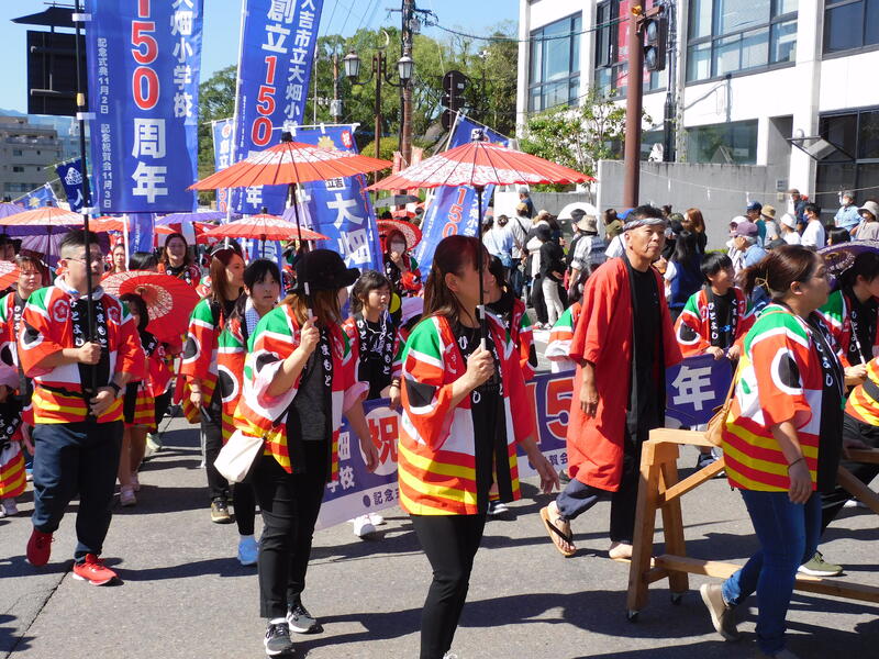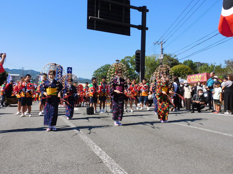 おくんち祭りの神幸行列に参加しました。勇壮な御神輿が多い中、「梅娘、お囃子、御神輿」が同居する本校の隊列は、ひときわ目立っていました。各所で披露した「パフォーマンス」は、多くの聴衆から大きな声援をいただきました。これまでの準備、本番までお世話いただいた、学校応援団、一心會、保護者の皆様ありがとうございました。