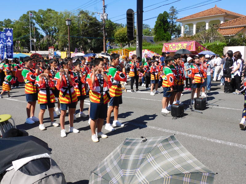 「お囃子」隊の練習も順調に進んでいます。歩きながらリズムをとることがポイントになりそうです。