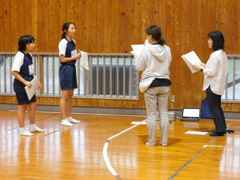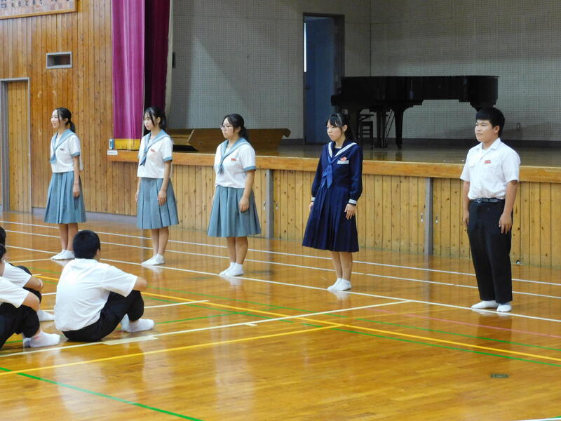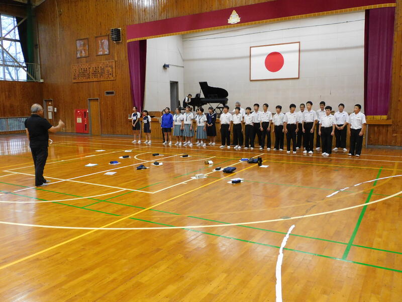 本番当日の雨天に備え、体育館での練習を行いました。外での活動とは異なり、動きも制約される中での練習になりましたが、小学生の子どもたちもしっかり話を聞いて頑張っていました。