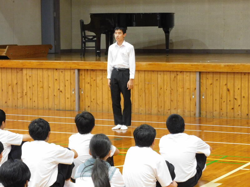 今年度3回目の「読み聞かせ」でした。1年西川さん、2年平井さん、3年甲斐さんに担当していただきました。生徒たちは真剣な表情で、3名の「読み聞かせ」に聞き入っていました。