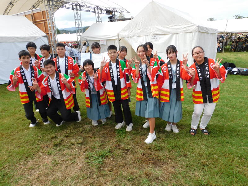 ひとよし温泉祭りに参加しました。当日は16名で参加し、「青い鳥」、「旅立ちのとき」の2曲を合唱しました。村田先生の指導のもと、これまで練習した成果を発揮し、美しい歌声を披露してくれました。