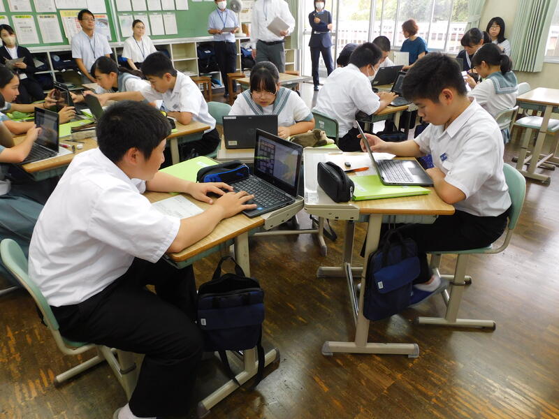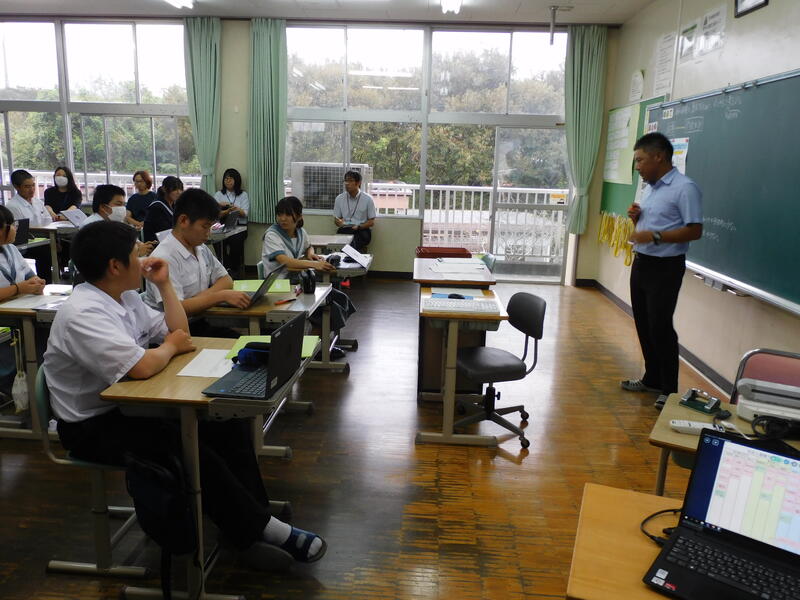 2年「特別活動」の研究授業があり、人吉球磨の小中学校からたくさんの先生方が参観されました。髙田先生の指導のもと、多くの参観者の前でも、堂々と自分の考えを発表する生徒の姿を大変頼もしく感じました。