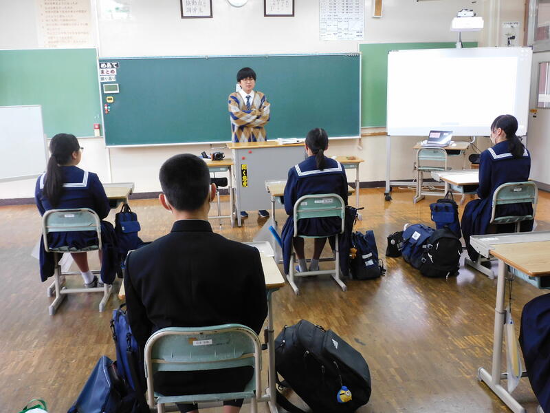 3校時、全生徒が参加し、「SOSの出し方」について授業を行いました。本時のめあてや流れを村田先生が説明し、村上先生から「相談を受けるときのスキル」について説明がありました。実際に相談活動シミュレーションを行いましたが、実践するのはなかなか難しかったようです。今日の学びを今後に生かしてほしいと思います。