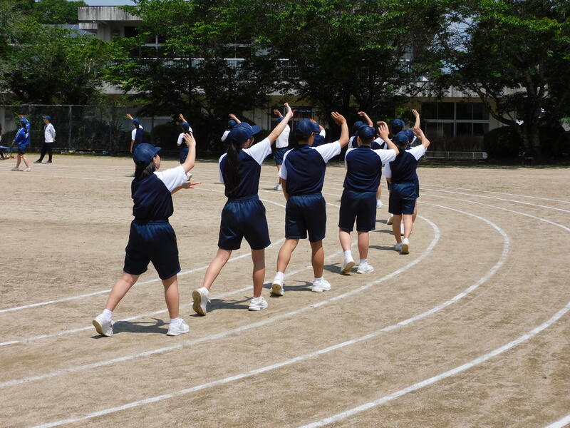 2・3年生の合同体育の様子です。本校生徒の課題として「柔軟性」があります。課題克服に向け、保体担当一鬼隆浩先生の指導のもと、入念にストレッチを行っていました。