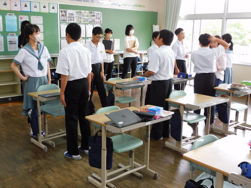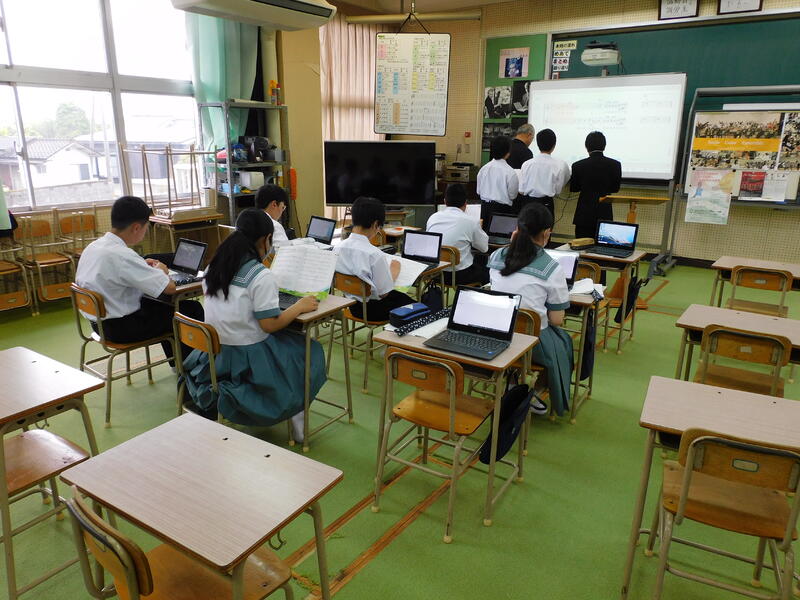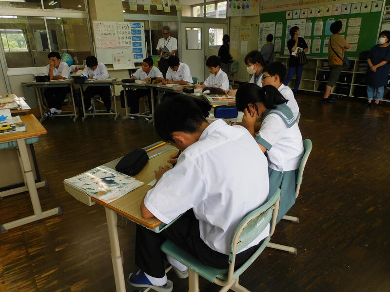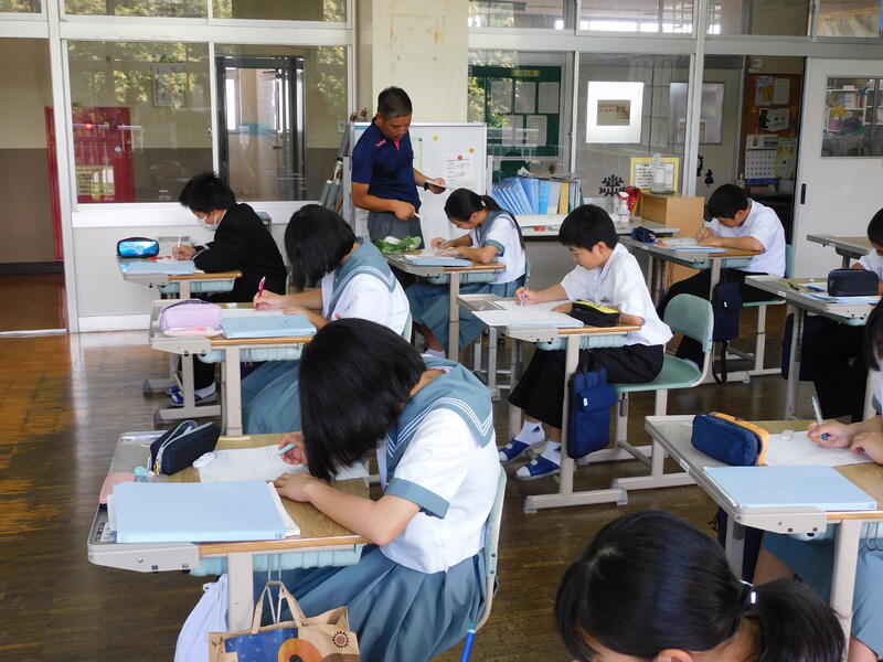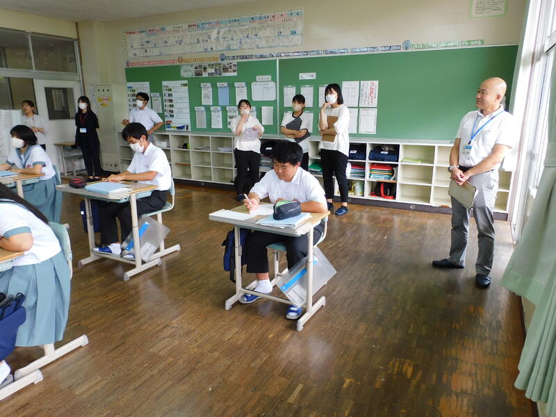 人吉市教育委員会による学校訪問がありました。市内小中学校から校長先生方も来ていただき、授業の様子を見ていただきました。生徒たちの落ち着いた学習態度をほめていただきました。