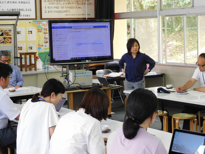 人吉市では、人吉市教育研究所を立ち上げ、教育の充実・振興を図っています。学力向上・英語教育・人吉学カリキュラム開発部会の3部会があり、本校で英語教育部会がありました。各小中学校から担当者が集まり今年度の取組について協議しました。取組の1つとして、6月17日(月)に本校折戸教諭が研究授業を行う予定です。