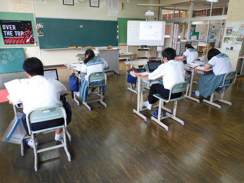 雨のため合同運動会は明日(13日)へ順延となりました。気持ちの切り替えが難しかった思いますが、生徒たちはしっかり授業に取り組んでいます。