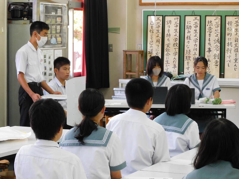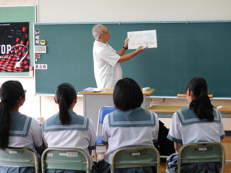 地域学校協働本部から3名の方を派遣していただき、「読み聞かせ」を実施しました。真剣に話を聴く生徒の様子から、言語に触れる良い機会になったと思います。