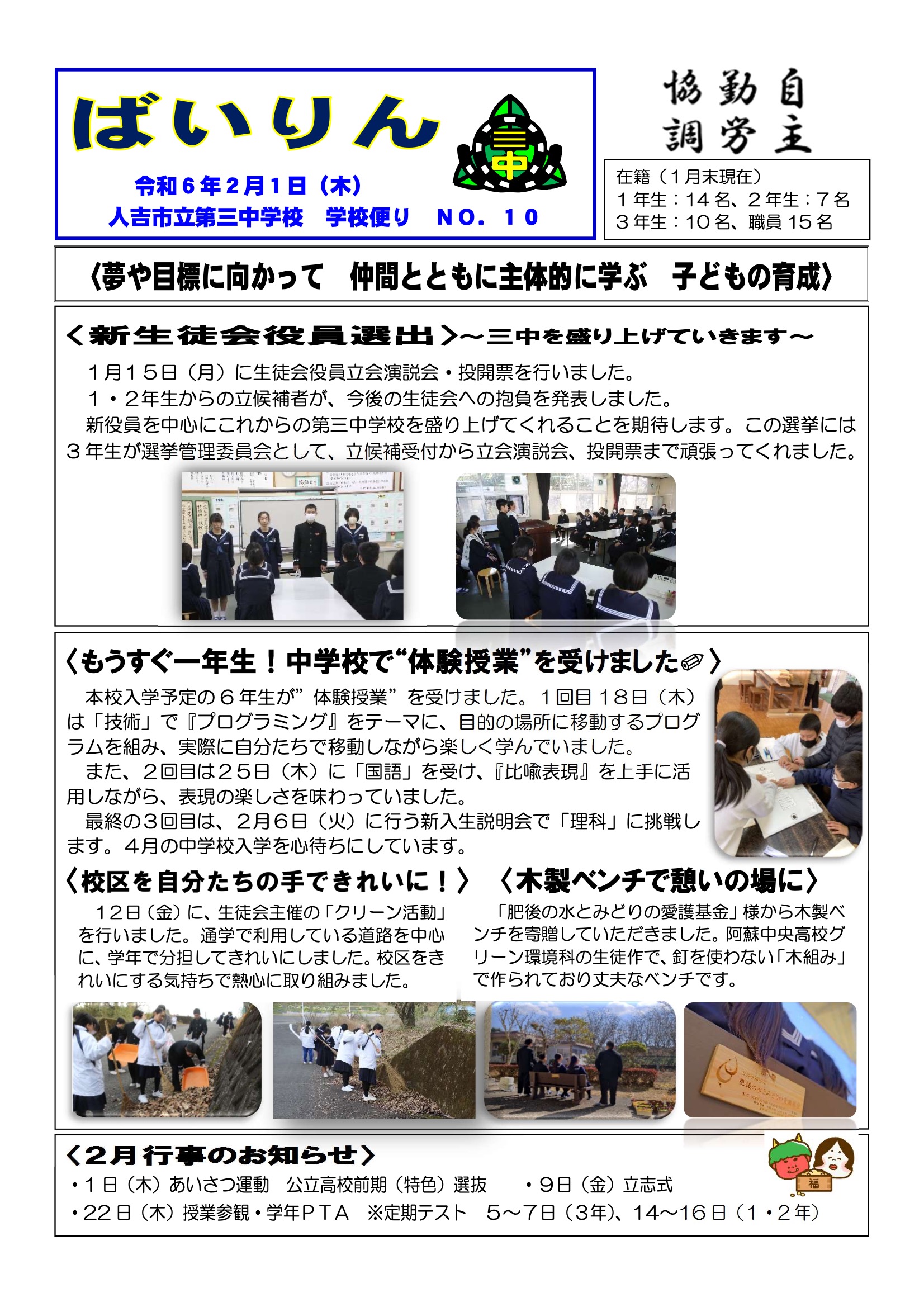 学校だより 「ばいりん」アーカイブ 投稿日時 : 2024/02/16 管理者 0 {{options.likeCount}} {{options.likeCount}} {{options.unlikeCount}} {{options.unlikeCount}}