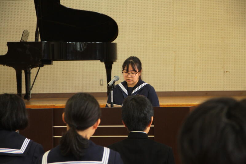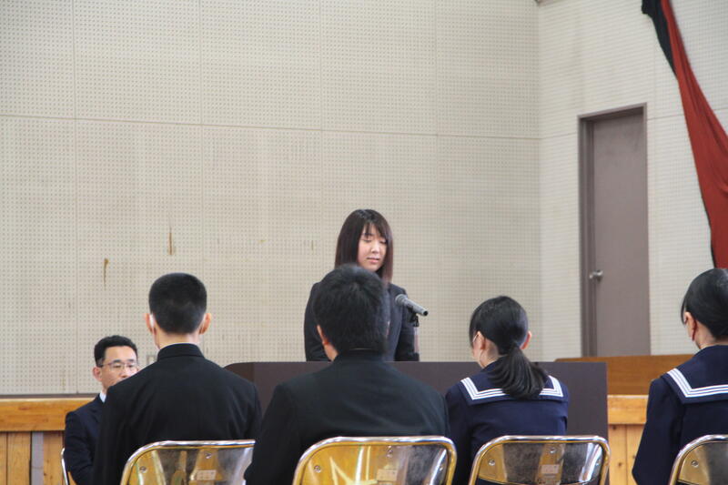 始業式では、代表生徒2名が今年度頑張りたいことなどを発表しました。