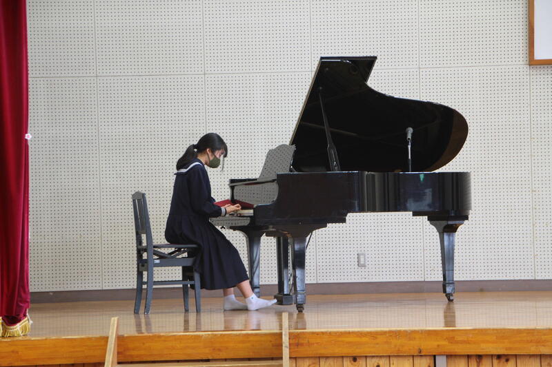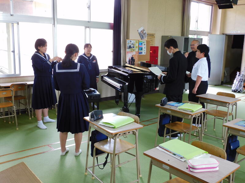 対面式では、新入生と先生方の自己紹介、部活動紹介を行いました。新入生はやや緊張気味でしたが、先生方は自分の趣味や余暇の過ごし方など話をしました。部活動紹介では、3つの部活動(女子バスケットボール部、ソフトテニス部、陸上競技部)が趣向を凝らした楽しい発表をしていました。