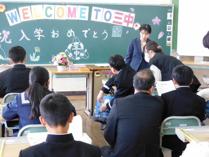 1年生では入学式のあと、1学年部の先生の挨拶、生徒と保護者の自己紹介、次の日からの日程説明、配付物の確認などがありました。
