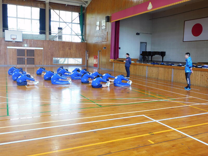 2・3年生の合同体育の様子です。本校生徒の課題として「柔軟性」があります。課題克服に向け、保体担当一鬼隆浩先生の指導のもと、入念にストレッチを行っていました。