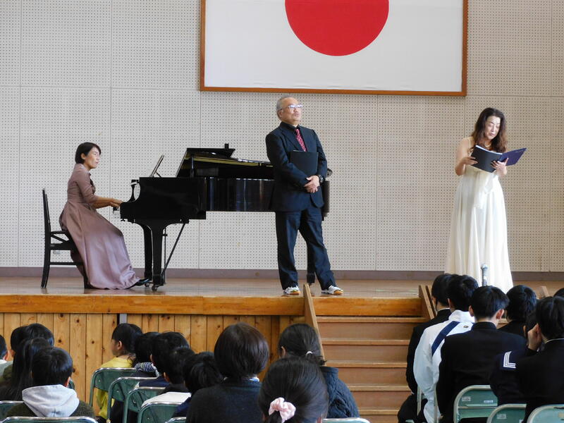 ソプラノ歌手光山様、エレクトーン奏者川元様にご来校いただき、「芸術鑑賞会」を実施しました。大畑小3~6年生、おこばこども園年長さん、地域の方々にもご観覧いただきました。体育館にすてきな「歌声」が響き渡りました。