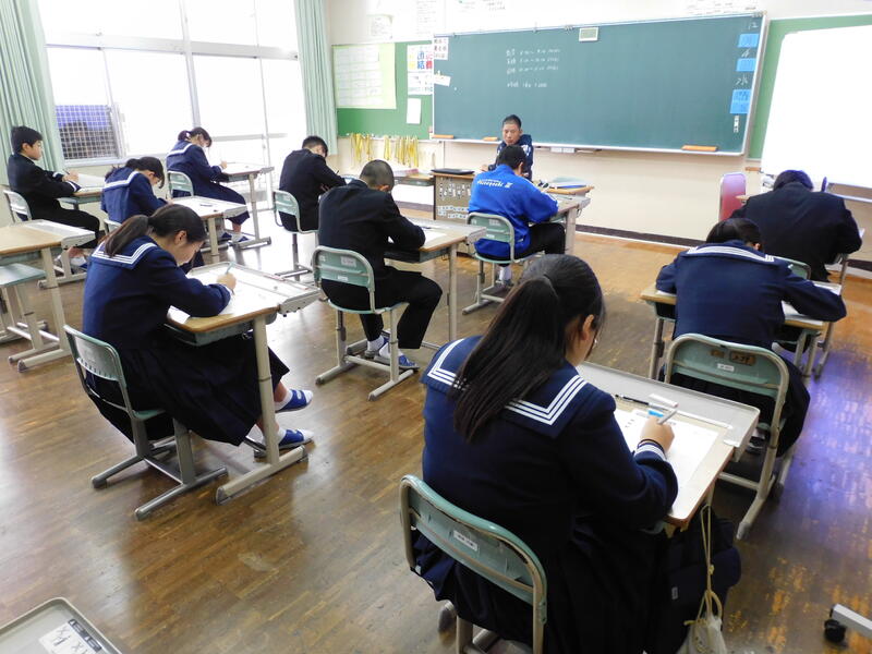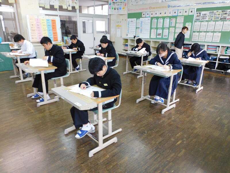 本日は、「熊本県学力学習状況調査」です。1・2年生が、国・数・英にチャレンジします。本調査が学力のすべてを計るものではありませんが、客観的な指標の一つになります。授業や家庭学習で学んできた成果を発揮しようと生徒たちは真剣に取り組んでいます。