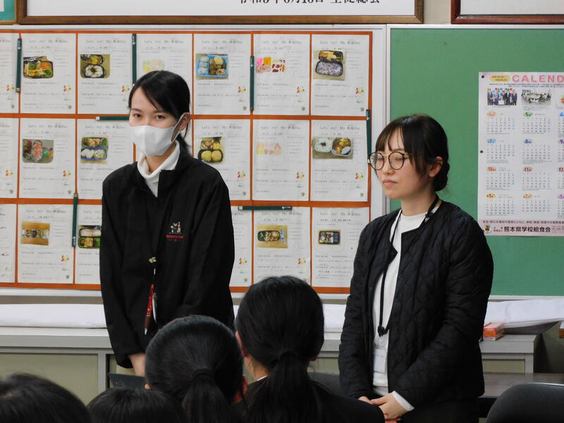 松岡市長にご来校いただき、本年度3回目の「スクールランチ」を実施しました。今回は1年生の生徒と会食していただきました。特別メニューとして、芦北より提供していただいた「デコポン」がありました。