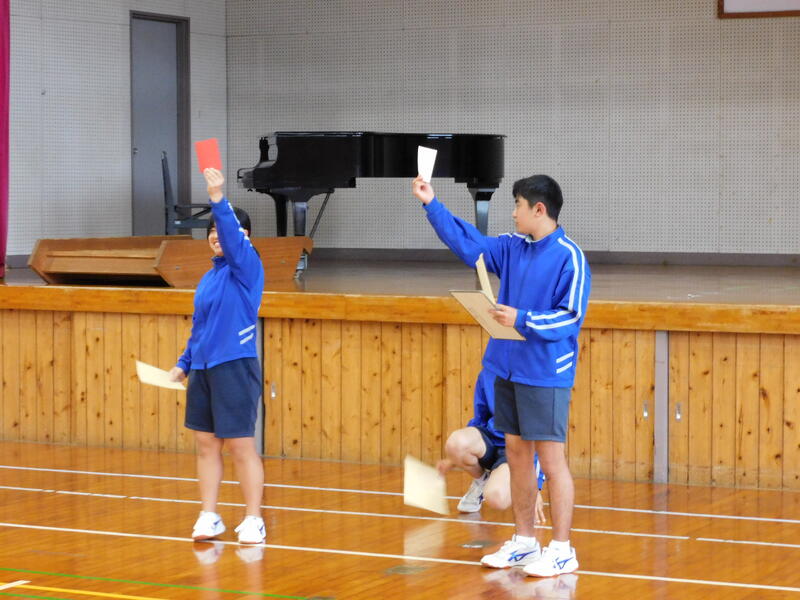 対面式では、生徒会スローガンの発表、新入生の自己紹介などを行いました。