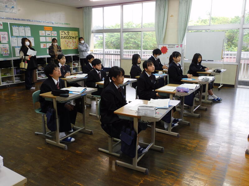 大畑小学校6年生が、本校にて「新入生体験入学」を行いました。1時間目から、社会、技術、国語、体育の授業と給食まで食べました。4月からスムーズに中学校生活をスタートできるよう、今年度からの新たな取組です。次回は11日(水)に実施します。