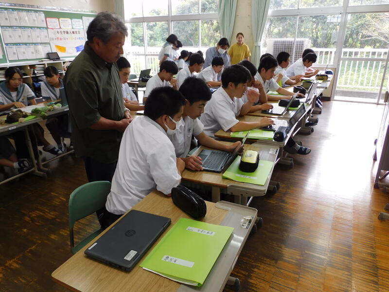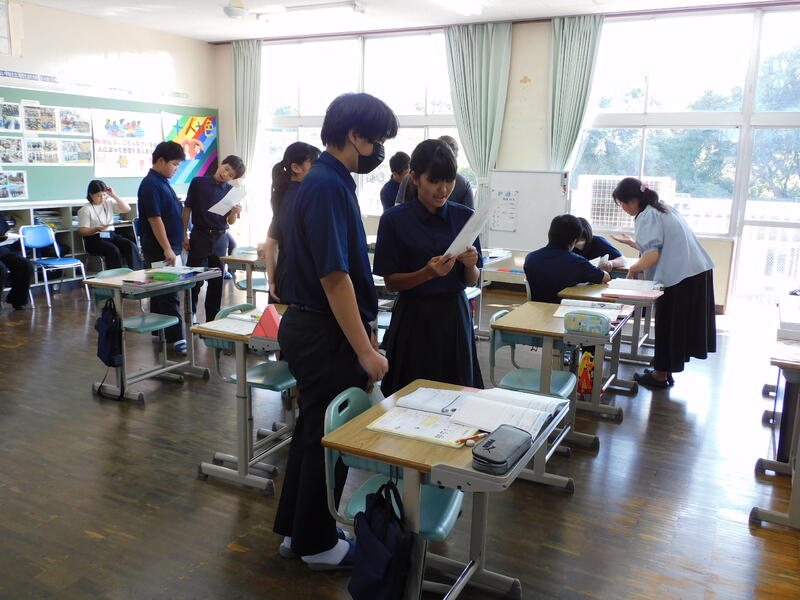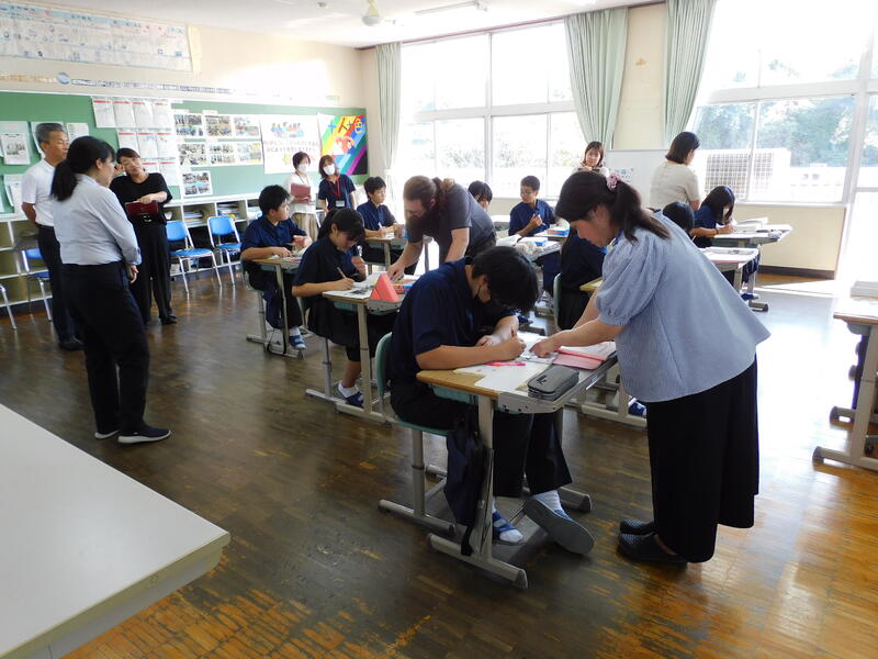 人吉市では、市内の小中学校合同で、英語の授業について定期的に研修会を行っています。今回は3中が当番校ということで、英語担当江原先生が授業を行いました。would like to~などの表現を用いて、友達を紹介する学習でした。生徒は意欲的に活動していました。
