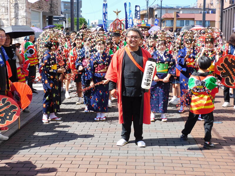 おくんち祭りに参加しました。10月とは思えない程暑い中でしたが、これまでの練習の成果を発揮し、観衆から多くの拍手をいただきました。第三中学校のアピールができました。ご協力いただいた、保護者、地域及び一心會の皆様ありがとうがざいました。