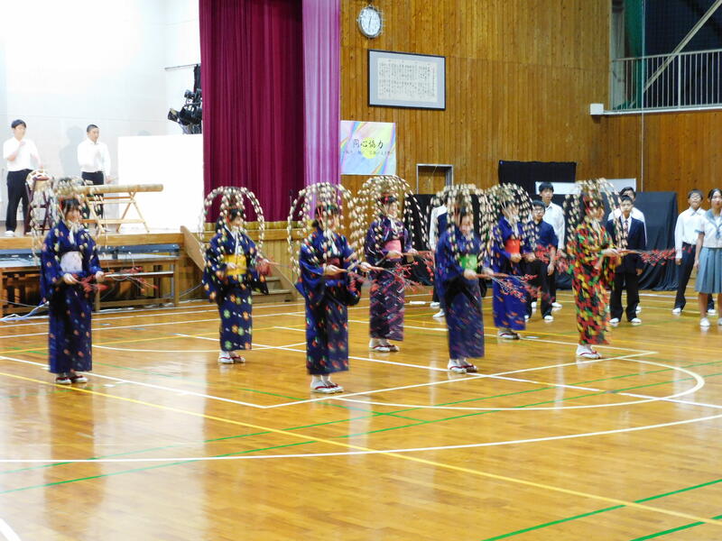 令和7年度文化祭を行いました。オープニングの「梅娘」から、ステージ上では、剣道の型、英語劇、グローバル体験発表、創作劇、合唱があり、今年度は大畑小学校5・6年生が歌を発表してくれました。展示物は、学習の成果物やおこばこども園児の作品もあり、大変見応えがありました。ご来場いただいた皆様ありがとうございました。