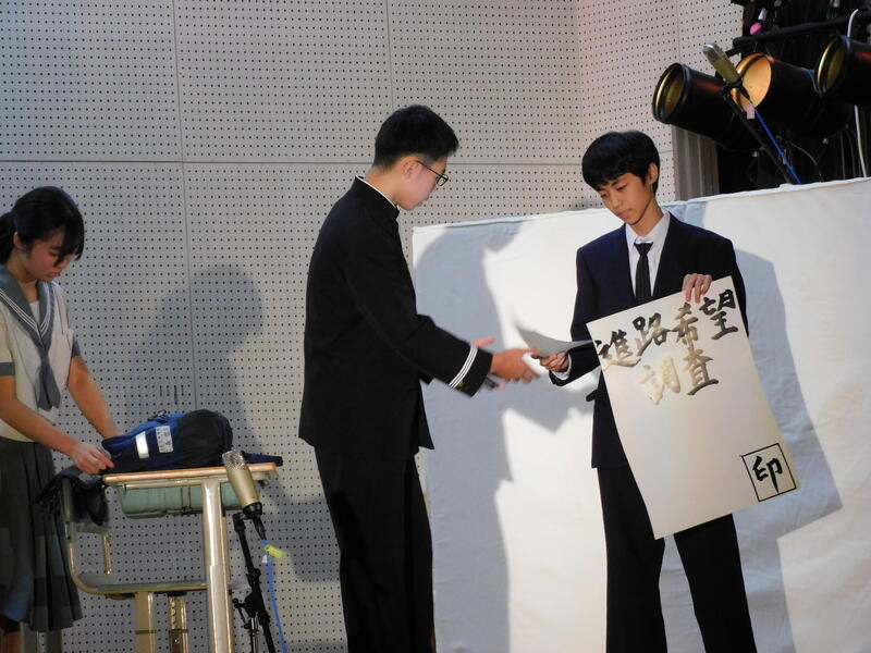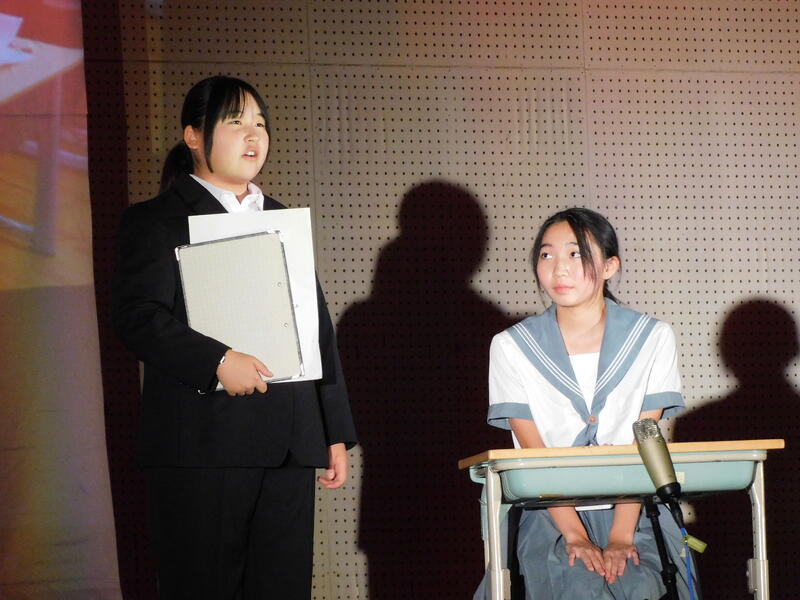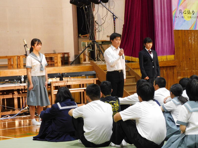 今年度3回目の「読み聞かせ」でした。1年西川さん、2年平井さん、3年甲斐さんに担当していただきました。生徒たちは真剣な表情で、3名の「読み聞かせ」に聞き入っていました。