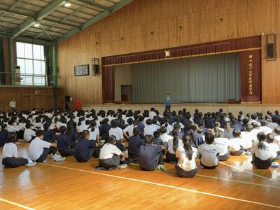 また、ちょっとした演劇も交えながら、二中生を楽しませてくれました。