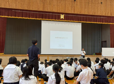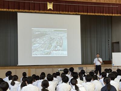 「人吉市の未来を考えよう」というテーマの講話を聞き、未来の人吉市について考えました。