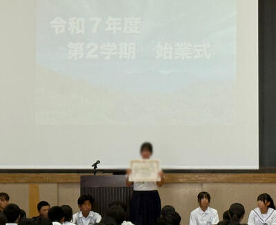 夏休み中に数多くの優秀な成績を収めたので、表彰を受けました。