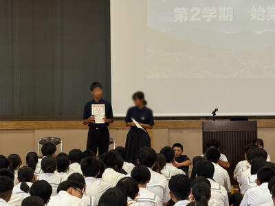 始業式は各学年の代表者が2学期の抱負を発表しました。