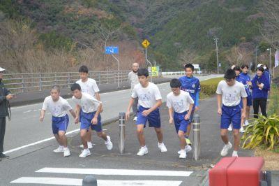 門松を作った後は、小学校へ移動して「小中高合同持久走大会」です。