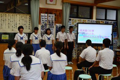12日は、生徒会執行部より「心のきずなを深める5箇条」の提案があり、各学年から人権学習の時間で学んだことの発表がありました。