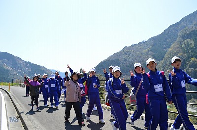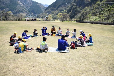 4月14日(金)は、新入生に向けて各部活動による部活動紹介が行われました。その後、小中合同歓迎遠足に出発しました。今年度は五木村の五木源パークまで小学生と一緒に歩きました。縦割り班でお弁当を食べ、一緒に遊ぶことができました。児童会と執行部が企画したレクリエーションで楽しい時間を過ごしました。