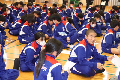 他にも、数人が挙手をして発表し、しっかりと自分を見つめて今後に生かそうという気持ちが感じられました。来年を見越して、ぜひとも有言実行で充実した学校生活を送ってほしいと思います。
