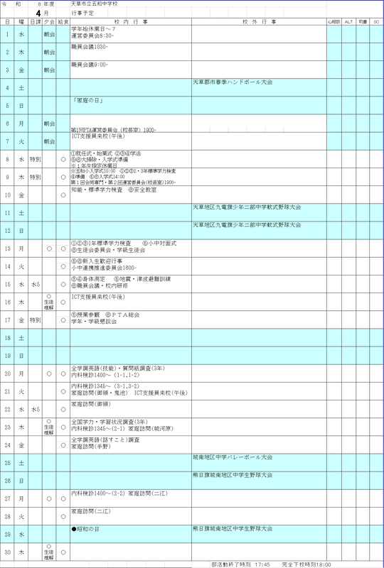 4月行事予定