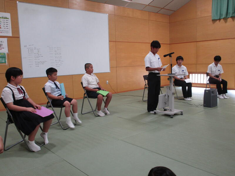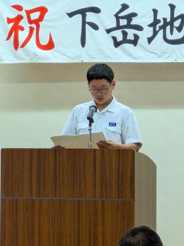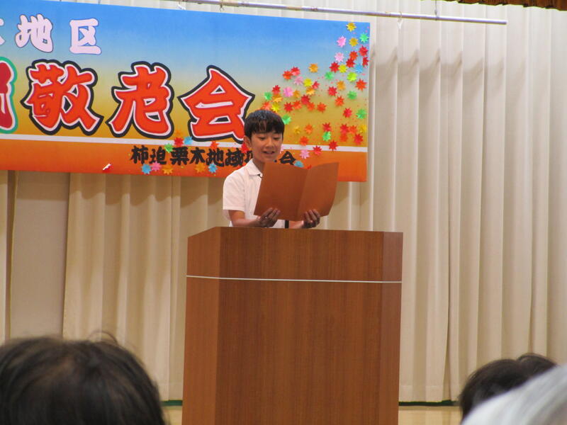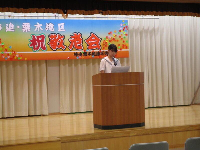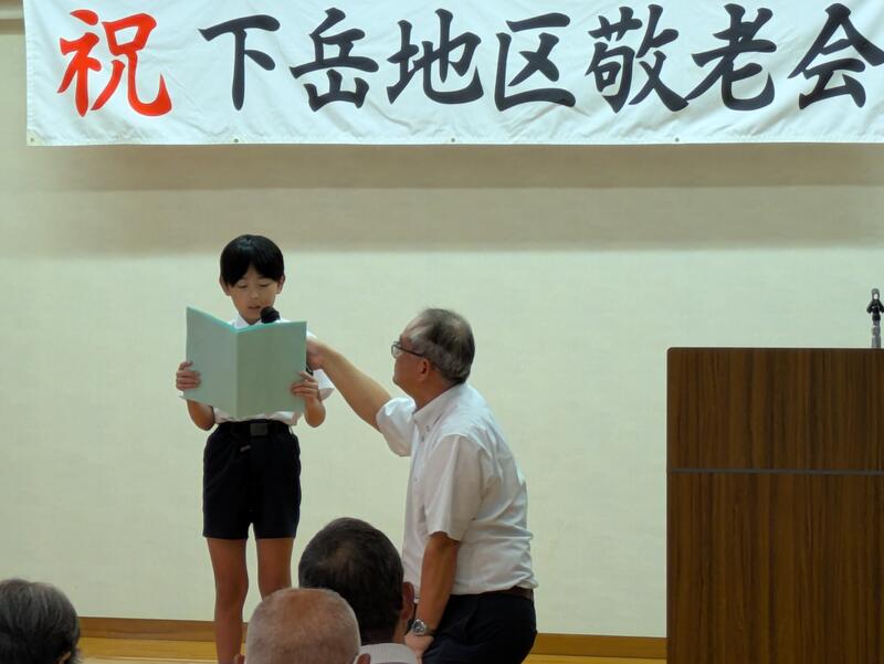 9月14日(日)に柿迫・栗木地区敬老会、9月15日(月)に下岳地区敬老会で、5名の児童生徒が作文発表を行いました。