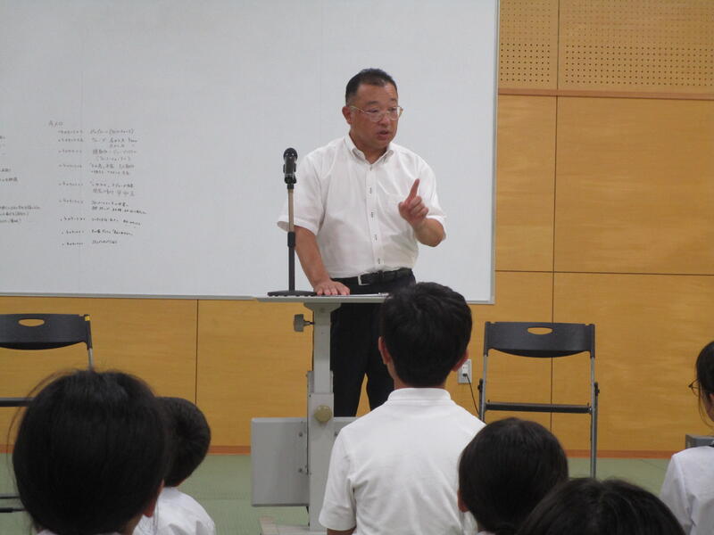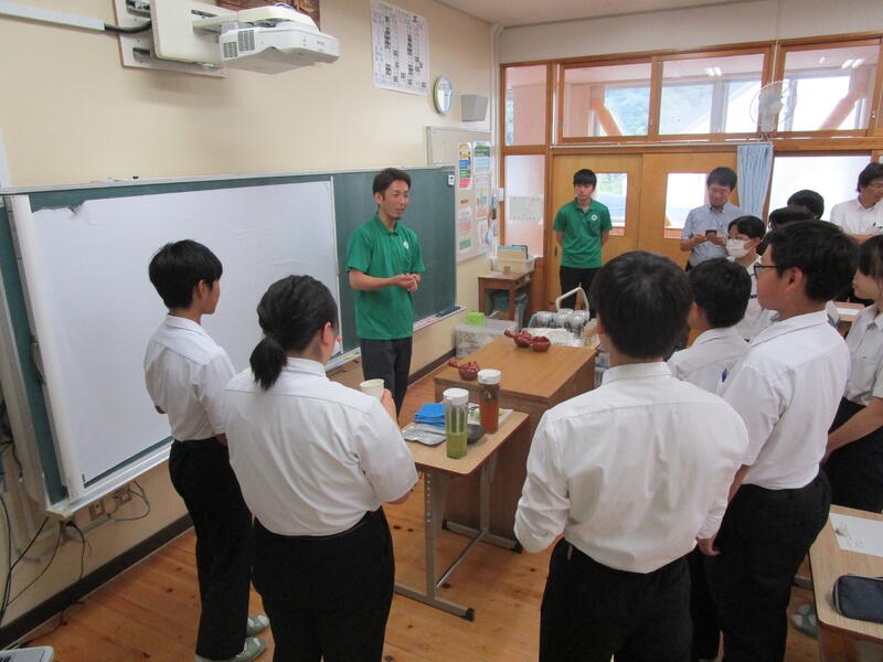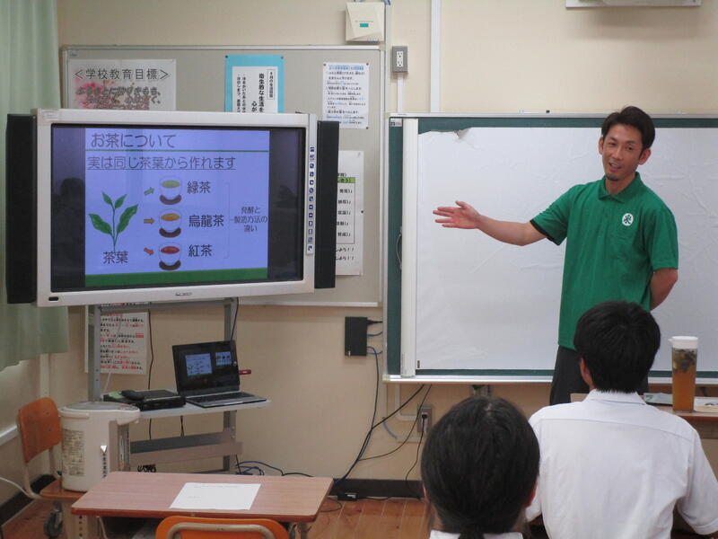 8月29日(金)茶業振興協議会の坂田さん(本校の保護者です)と泉支所の橋本さんをお招きし、中学生を対象に「お茶講話」を行っていただきました。