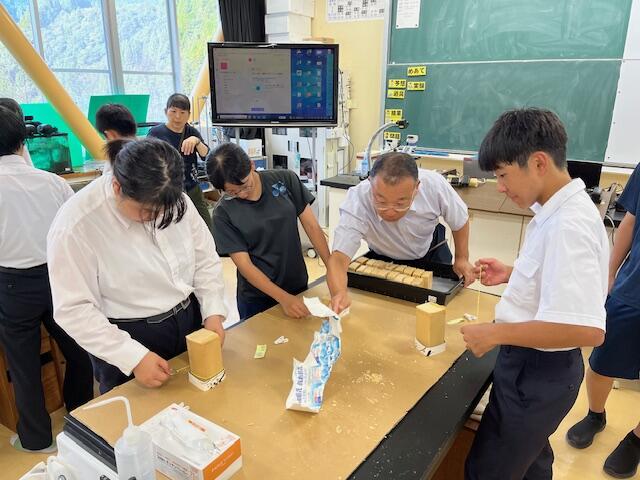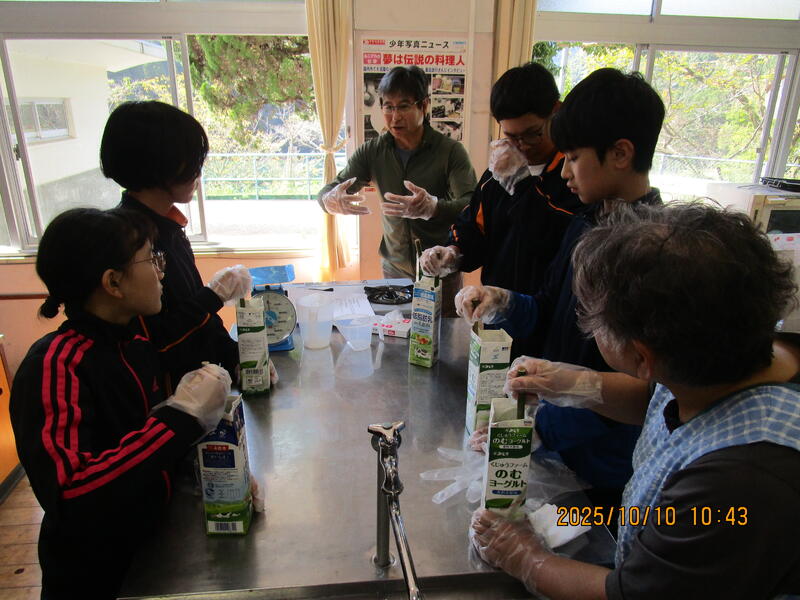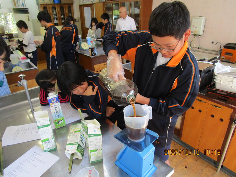 10月10日(金)、泉町下岳にある「山の台所」の平川さんと、地域学校協働活動コーディネーターの佐伯さんに講師としておいでいただき、小学5年生~中学2年生が「廃油石けん作り」を行いました。
