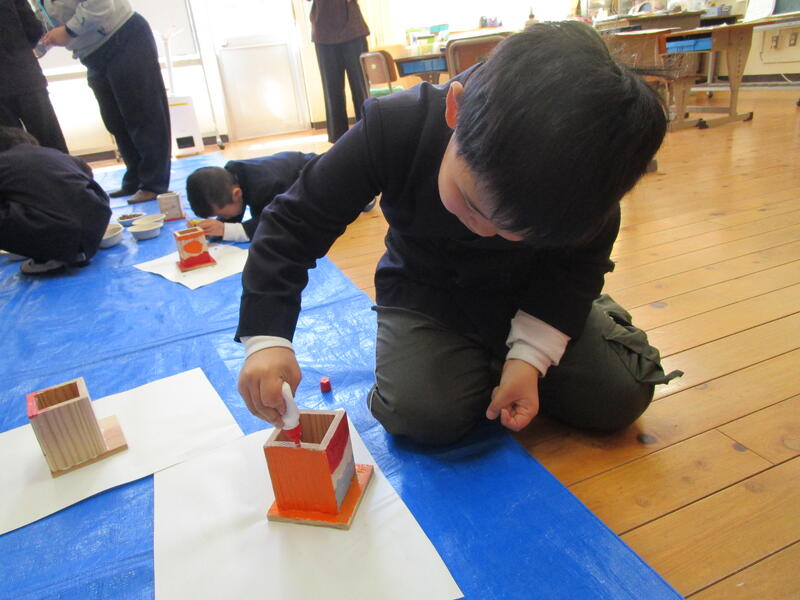 図工で新聞紙を使って、家やテントを作っていました。子供たちの想像力は素晴らしいもので、おもしろい楽しいものがたくさんできていました。そのときに1年生の男の子が「校長先生、そこに立って!」と言われ立つと、新聞紙で作ったボタンを押して、「ほら、上からお菓子が降ってきたでしょ!」と満面の笑みでした。私も「たくさん降ってきた」と思わず答えました。本当に子供の想像力がすごいなと思いますし、これが創造力につながるのだと思ったところです。