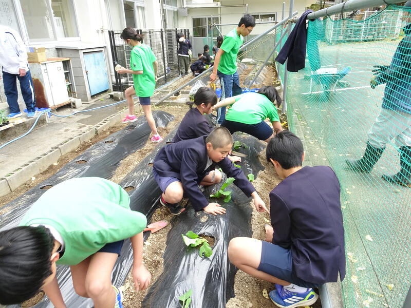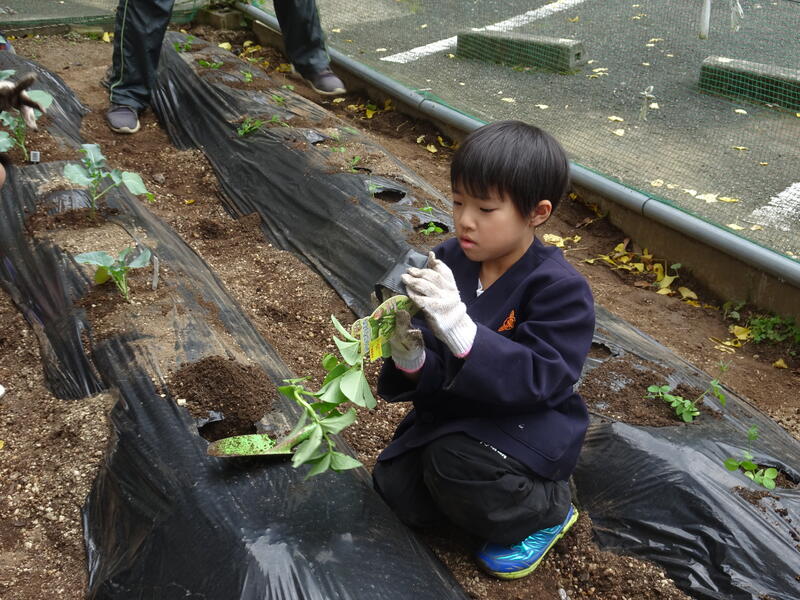 12月8日(月)、小学生が冬野菜を植えました。