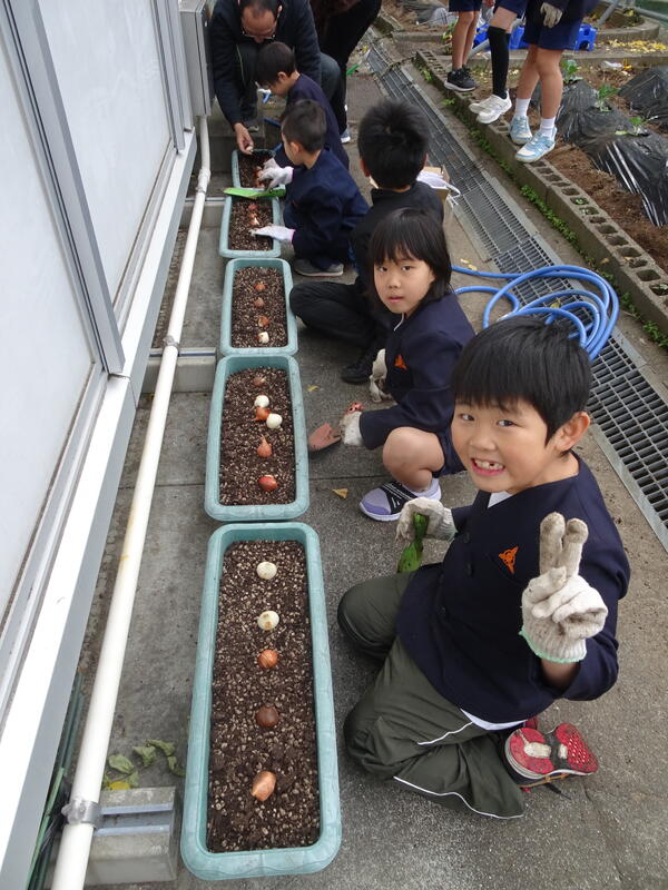 また、卒業式や入学式で飾ることができるよう、チューリップの球根をたくさん植えました。