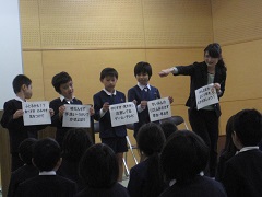 1時間目は、「あいさつ」や「へんじ」についてのお勉強をした後、交通安全についてのお勉強をしました。