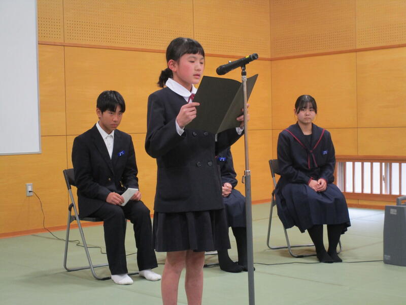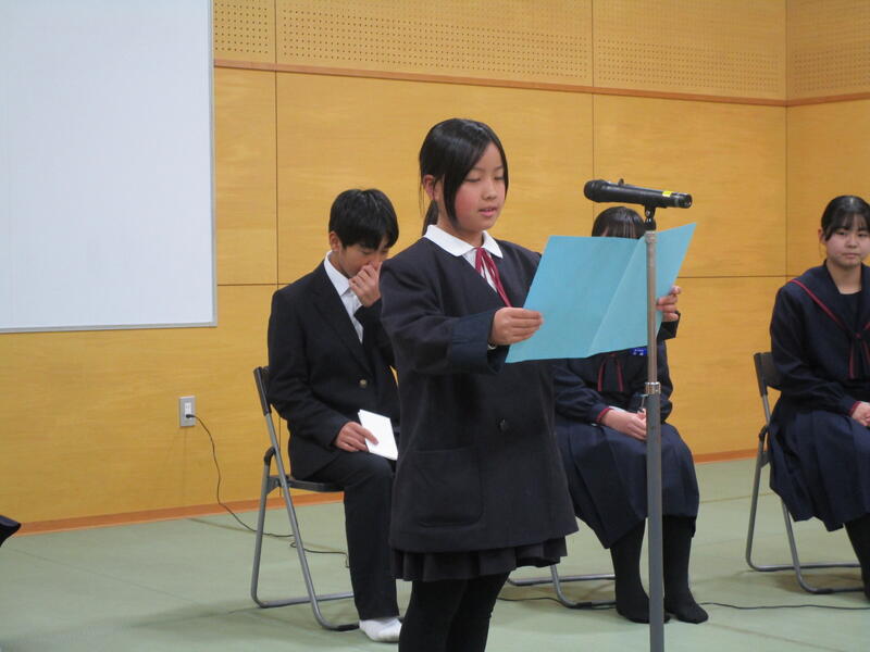 各学級の代表児童生徒が、3学期に頑張りたいことや目標を、元気に発表してくれました。