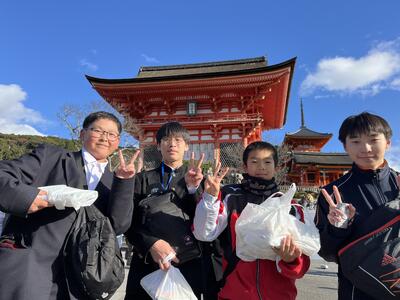 今日はお楽しみの班別自主行動でした。最初の北野天満宮と金閣寺だけは職員が引率しましたが、後はそれぞれです。遅れたり迷ったりする子供が出るのではとドキドキしていましたが、どの班もスムーズに最後の清水寺まで到着しました。