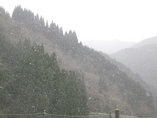 昨日までの暖かさが嘘のように、今日は朝から雪が降りました。